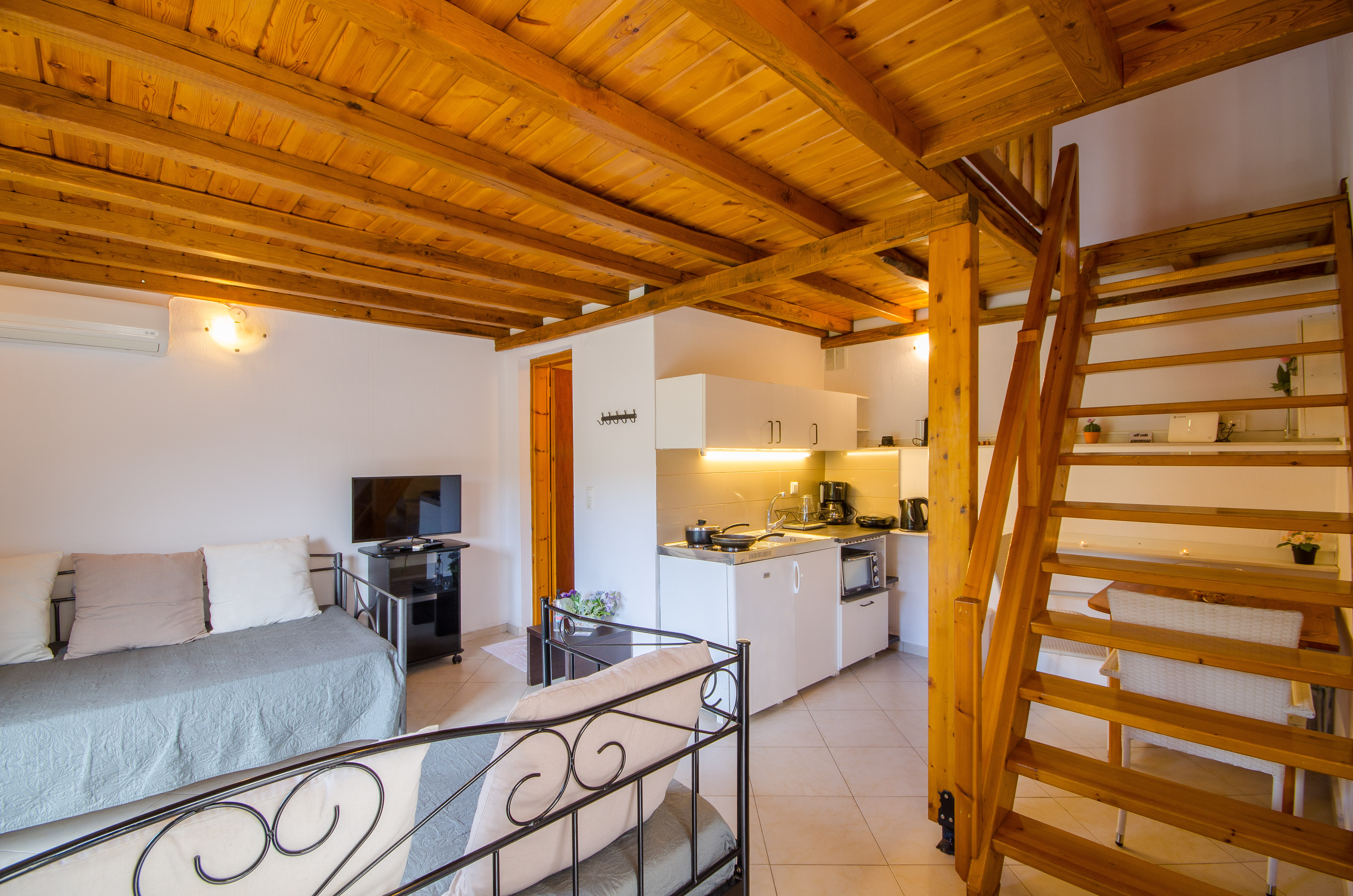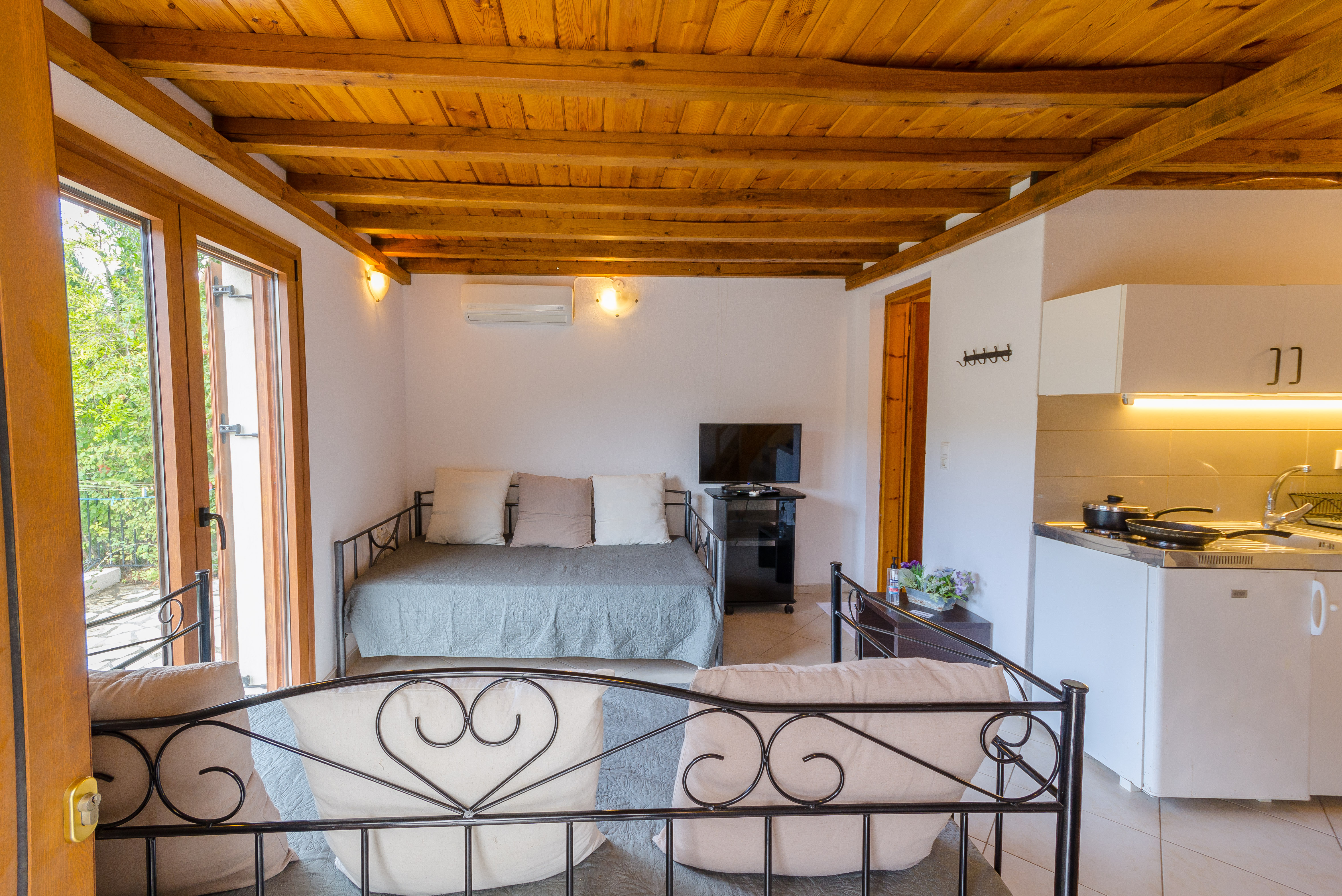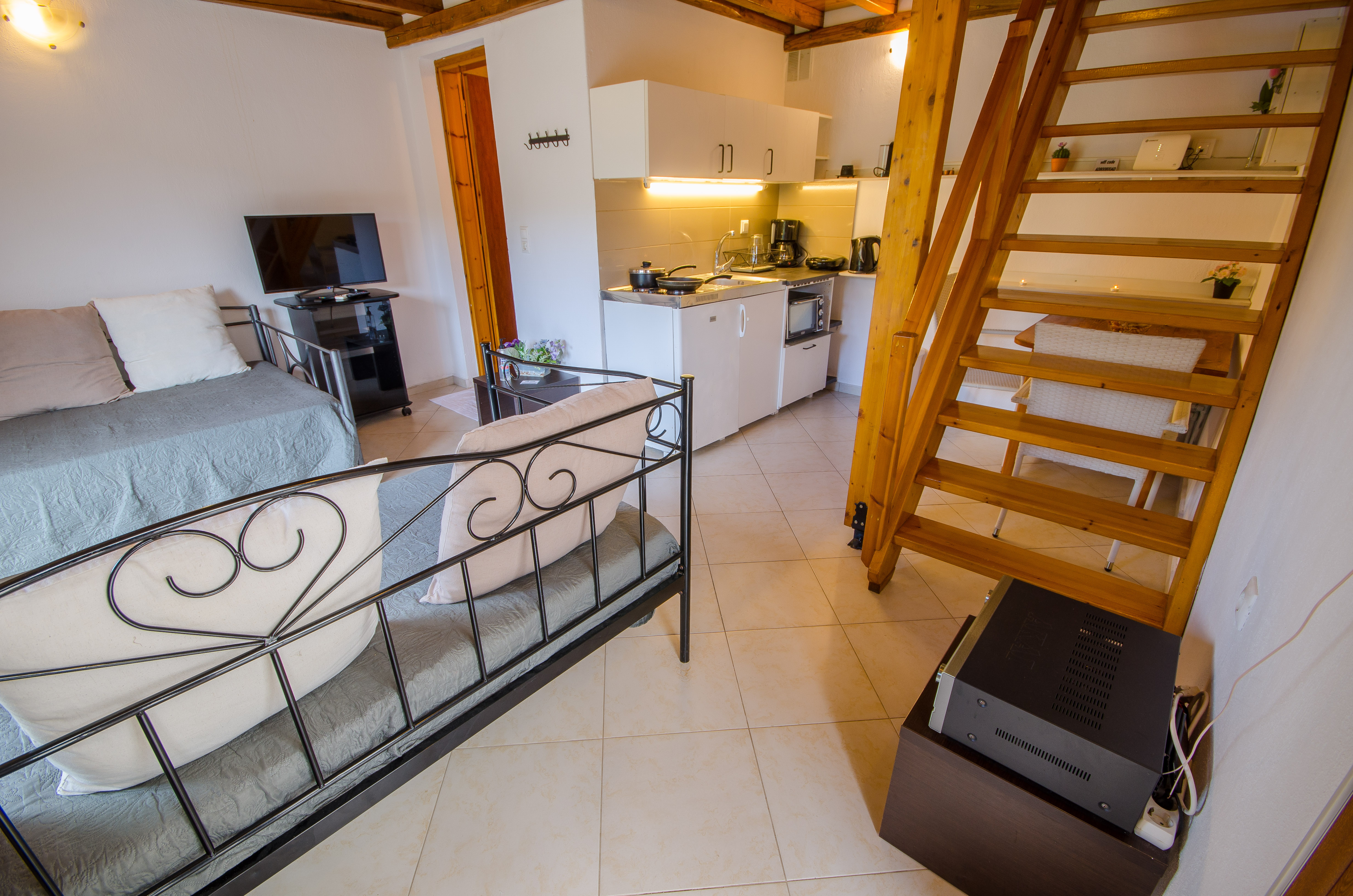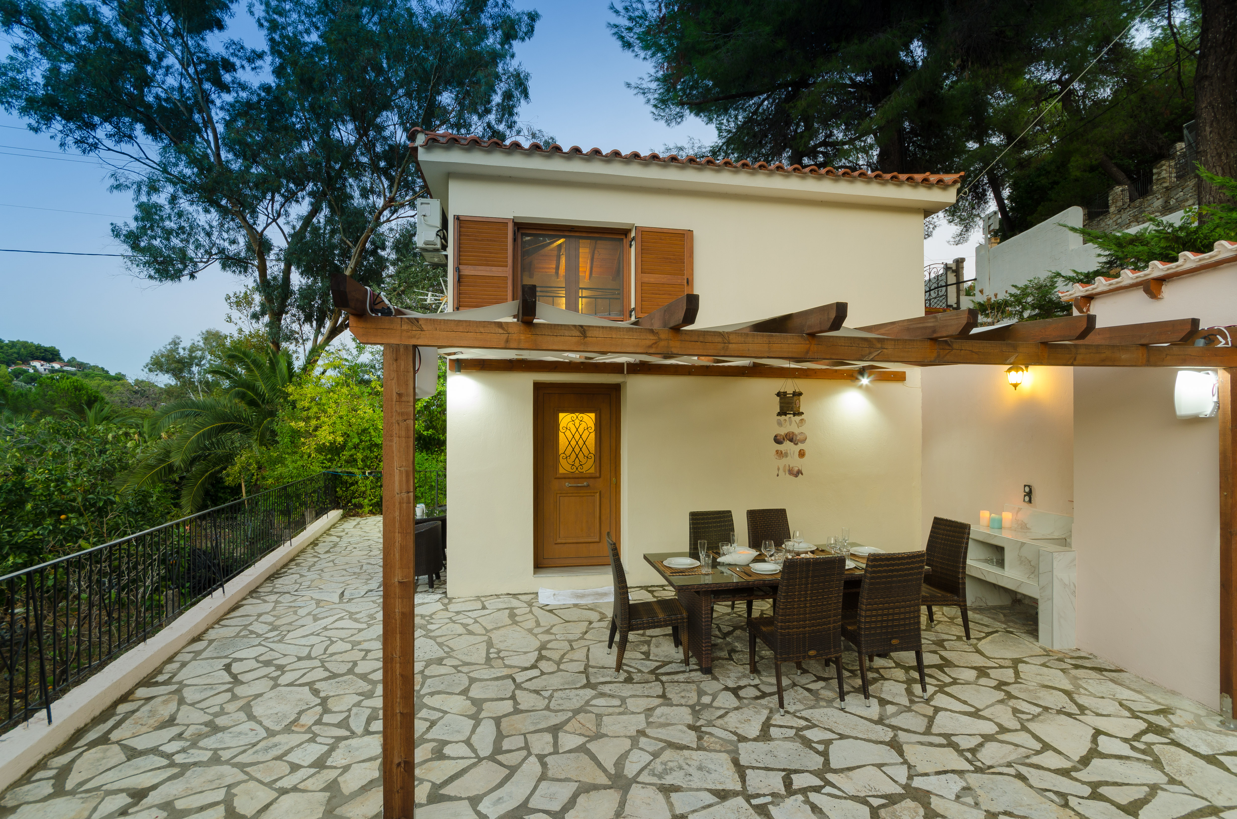 Villa “Louisa” is a beautiful detached two-storey villa situated in one of the most renowned islands of Greece, Skiathos, belong to Sporades archipelago, which is favored by Hollywood stars and jet setters. The house is built at one of the most prime areas of the island, Kalamaki, above the Tzaneria beach. However, the house offers absolute privacy to its guests. The ground floor comprises an open plan kitchen, a living room and a WC. The first floor comprises of a master bedroom with its own full en-suite bathroom. The house is fully equipped with kitchen appliances and an LCD television at the living room as well as Free WiFi in all areas. Additional features include a grand private parking space for two automobiles and a large, well-appointed furnished exterior space. Villa “ Louisa “ it can accommodate up to five people.